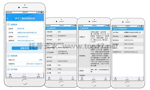 托普農(nóng)作物種子二維碼標(biāo)簽追溯系統(tǒng)web界面及手機(jī)APP: