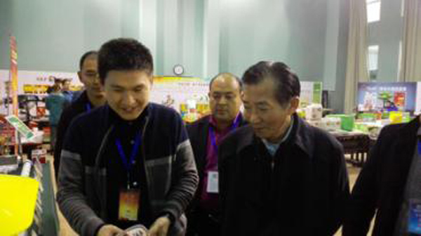 農業部陳曉華副部長(右一)在托普云農陳曦總監(右二)的陪同下參觀展位