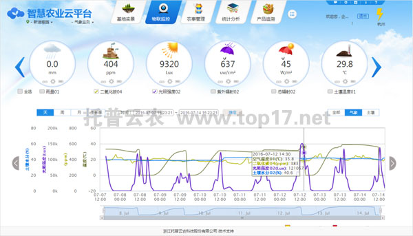 托普云農(nóng)傳感器在智慧農(nóng)業(yè)云平臺(tái)上的數(shù)據(jù)監(jiān)測(cè)顯示
