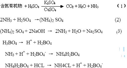 含氮有機物與濃硫酸共熱,被氧化成二氧化碳和水,而氮則轉變成氨,氮進一步與硫酸作用生成硫酸銨。由大分子分解成小分子的過程通常稱為”消化”。為了加速消化,通常需要加入硫酸鉀或硫酸鈉以提高消化液的沸點(290℃→400℃),加入硫酸銅作為催化劑,過氧化氫作為氧化劑,以促進反應的進行。