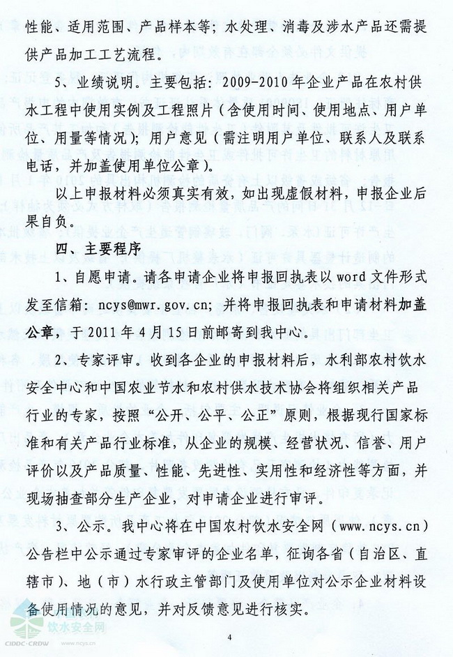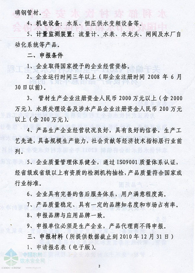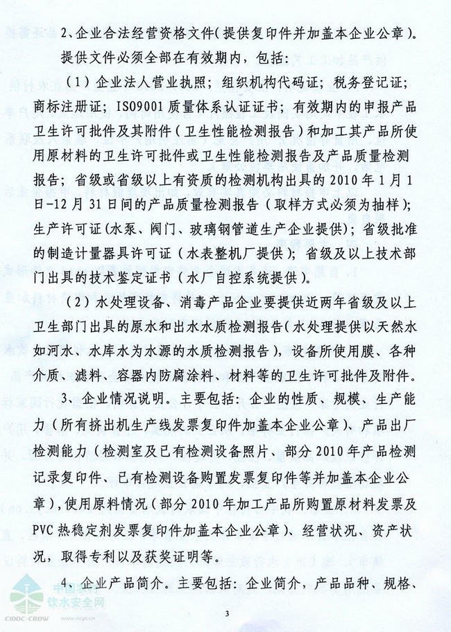 關(guān)于編制《2011年全國(guó)農(nóng)村飲水安全工程材料設(shè)備產(chǎn)品信息年報(bào)》的函