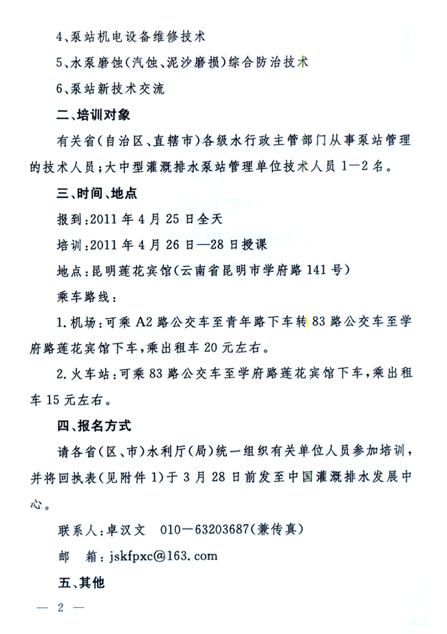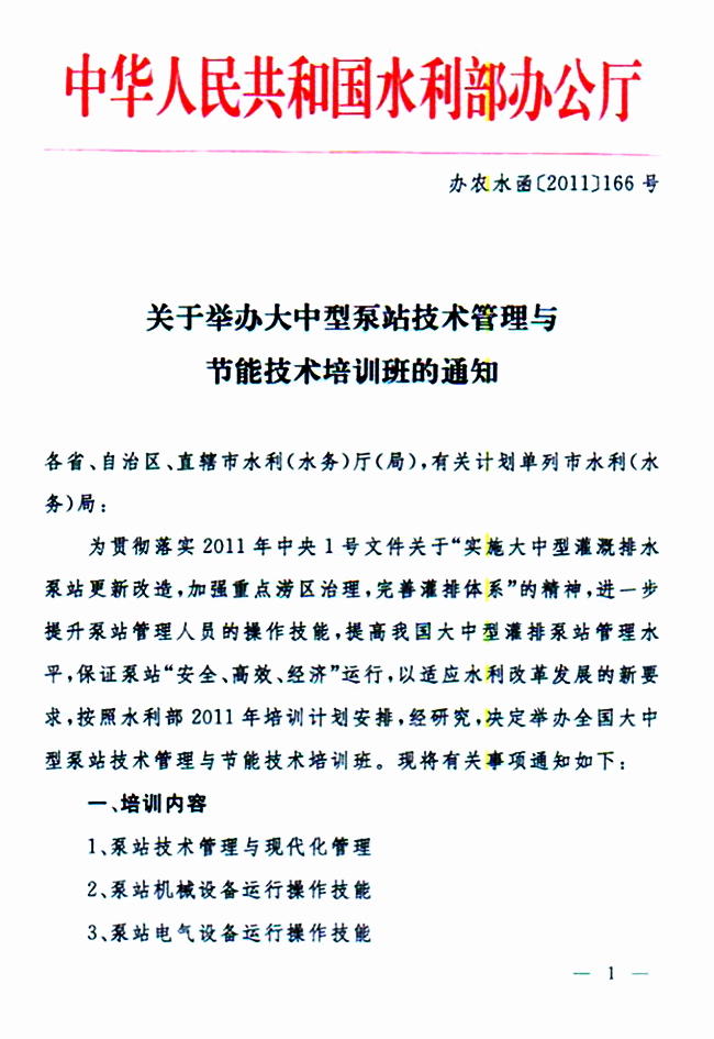 關(guān)于舉辦大中型泵站技術(shù)管理與節(jié)能技術(shù)培訓(xùn)班的通知