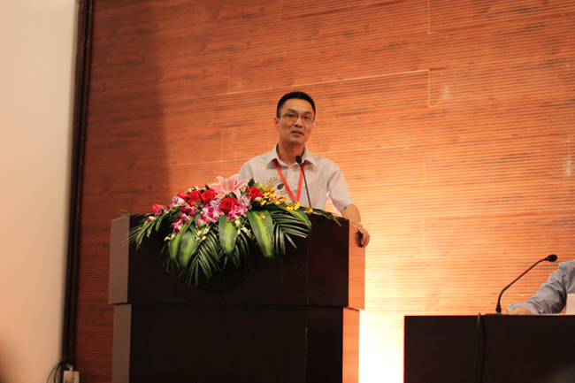 圖為托普儀器陳渝陽總經(jīng)理作為系友代表上臺講話