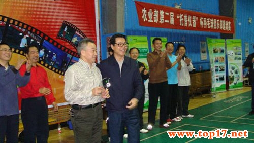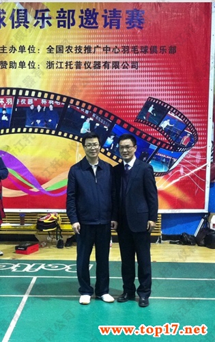 2011年12月24日第二屆農(nóng)業(yè)部“托普儀器”杯羽毛球邀請賽在北京貝特羽毛球館隆重舉行。部黨組成員、人事勞動司梁田庚司長親臨賽場揮拍試球,感受了比賽現(xiàn)場的激烈氣氛,并為冠軍隊(duì)全國農(nóng)技推廣中心羽毛球俱樂部隊(duì)頒發(fā)冠軍獎杯。