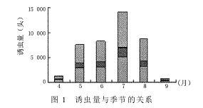 1.2.3 試驗時間 從4月底開始,到9月中旬結(jié)束,每天19時至翌日6時開燈。定人定時隔日對誘蟲情況進(jìn)行統(tǒng)計記載。