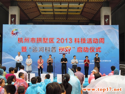 2013年5月17日上午,拱墅區(qū)2013年科技活動周暨“運河科普視界”活動啟動儀式在小河路中國杭州刀剪劍博物館廣場隆重舉行。此次科技活動周主題為“科技推動創(chuàng)新 建設(shè)幸福拱墅”。杭州市科協(xié)主席鄔麗娜、杭州市科委副巡視員徐植、浙江省科協(xié)科普部副部長姜曉東、拱墅區(qū)四套班子領(lǐng)導、市科委、市科協(xié)、浙大城市學院、浙江樹人大學等領(lǐng)導應(yīng)邀出席開幕式。區(qū)各相關(guān)機關(guān)單位、職能部門、街道科協(xié)、區(qū)屬學(協(xié))會、轄區(qū)高校、高新技術(shù)企業(yè)代表、社區(qū)居民等500多人參加開幕式,共同啟動了2013年拱墅區(qū)科技活動周暨“運河科普視界”活動。