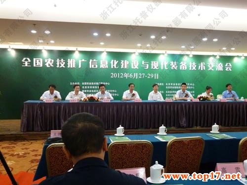 2012年6月28日至29日,全國農(nóng)技推廣信息化建設(shè)與現(xiàn)代裝備技術(shù)交流會(huì)在北京成功舉辦,農(nóng)業(yè)部市場(chǎng)與經(jīng)濟(jì)信息司李昌健副司長(zhǎng)、全國農(nóng)技推廣中心陳生斗主任、杭大鵬書記、栗鉄申副主任、北京市農(nóng)林科學(xué)院李云伏院長(zhǎng)及農(nóng)業(yè)部相關(guān)司局同志參加了會(huì)議。浙江托普儀器作為此次會(huì)議的協(xié)辦方和國家高新技術(shù)企業(yè),為會(huì)議的成功召開做出了不懈的努力。