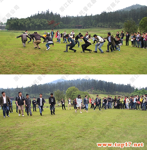 上午的拓展活動在園中翠綠色的大草坪上展開,托普儀器近300人的龐大隊(duì)伍被分成了10個小組進(jìn)行團(tuán)體比賽。兩場比賽分別為“快樂抱抱爆”和“穿越生死網(wǎng)”,雖然游戲的名字和比賽的方式不同,但同樣都是關(guān)于速度與時間的較量。