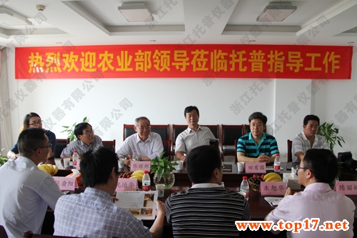 2014年7月5日,農(nóng)業(yè)部原部長(zhǎng)、中國(guó)農(nóng)技推廣協(xié)會(huì)名譽(yù)會(huì)長(zhǎng)陳耀邦一行在浙江省農(nóng)業(yè)廳相關(guān)領(lǐng)導(dǎo)的陪同下,蒞臨托普儀器開(kāi)展調(diào)研活動(dòng)。在詳細(xì)了解托普儀器發(fā)展現(xiàn)狀、未來(lái)規(guī)劃之后,調(diào)研組與托普儀器管理高層召開(kāi)了座談會(huì)。