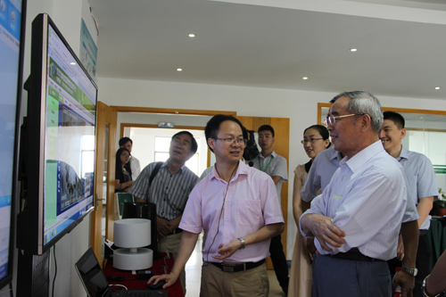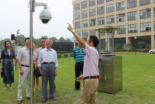 圖為:調(diào)研組查看托普儀器室外監(jiān)測點