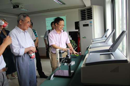 在一樓大廳的公司榮譽(yù)墻前,托普儀器陳渝陽總經(jīng)理為陳耀邦部長一行領(lǐng)導(dǎo)簡單介紹了公司成立十年來所取得的不錯成績。隨后,調(diào)研組分別參觀了儀器設(shè)備展覽室、實驗室和研發(fā)中心,每一個考察點都是助力現(xiàn)代農(nóng)業(yè)發(fā)展的科技成果,給予陳耀邦部長調(diào)研組全體成員足夠的吸引力與震撼。