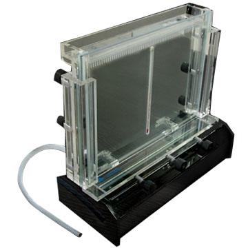 配0.4 mm厚36齒鯊魚齒梳子,緩沖液冷卻方式,絕不漏液打火,操作方便,性能穩定,譜帶清淅、平直,用于DNA測序,尤其適合于AFLP分子標記相關儀器